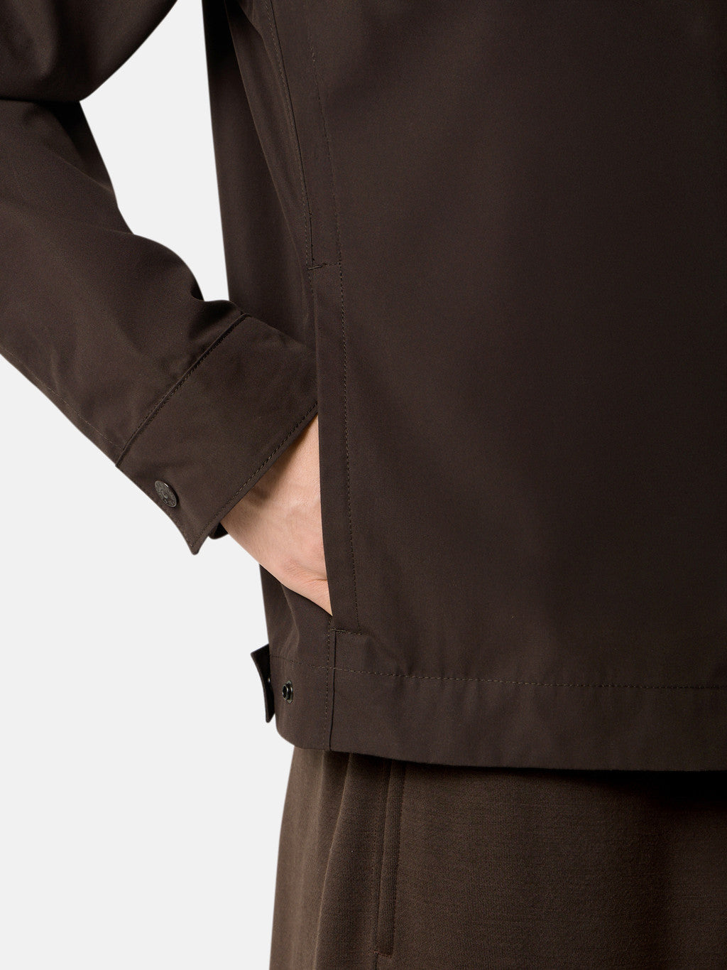 Ghost pieces, derived from the concept of camouflage, are totally monochromatic. Even the Stone Island badge is created in a special monocolour version to blend in with the garment. Overshirt made of a tightly woven cotton canvas fabric using the finest, long staple premium organic cotton fibres. The combination of dense weaving and swelling properties of the fibre when wet, provides an excellent weather barrier with no need for extra coating or lamination. It is entirely natural, offering a unique level of comfort and touch. It is windproof, breathable, and very durable.
