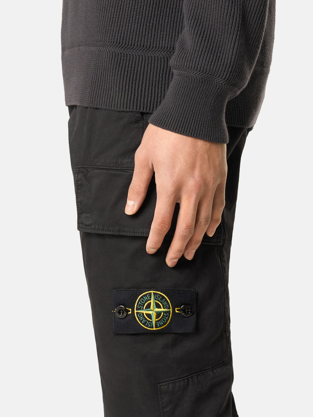 Cargo trousers in stretch organic broken twill cotton. Garment dyed with the 'OLD' treatment, an exclusive dyeing treatment and subsequent fading on the finished garment for a slightly worn and three-dimensional appearance.