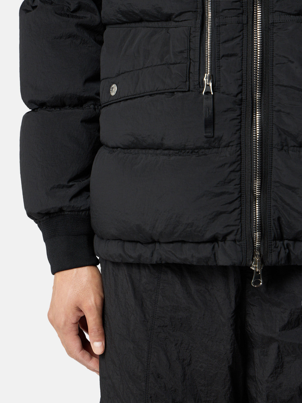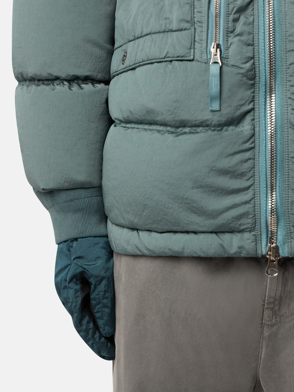 Hooded down parka in Stone Island's iridescent Nylon Metal fabric. The evolution of this iconic fabric sees the use of ECONYL regenerated yarns: the life ended nylon, pre- and post-consumer, is recycled with a complex depolymerization process to create this fibre that features the same intrinsic characteristics of nylon from fossil raw material. Garment dyed with a double colour recipe and the addition of a special anti-drop agent. Padded with the finest feathers specifically treated to withstand the garment dyeing procedure. RDS - Responsible Down Standard certified.