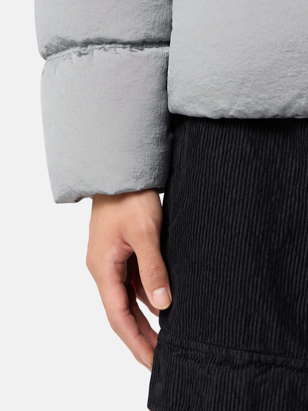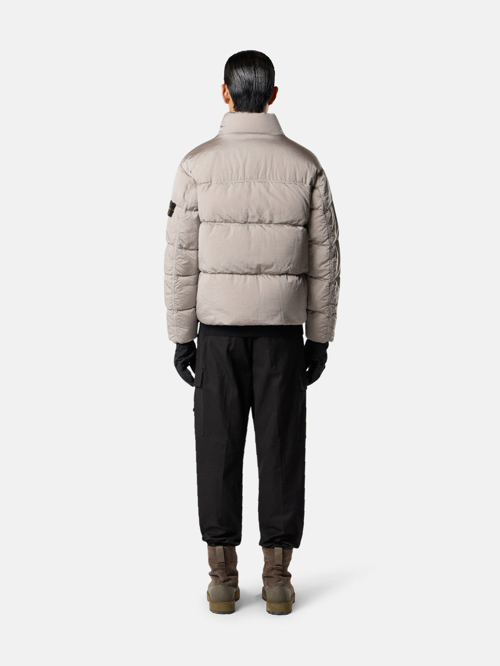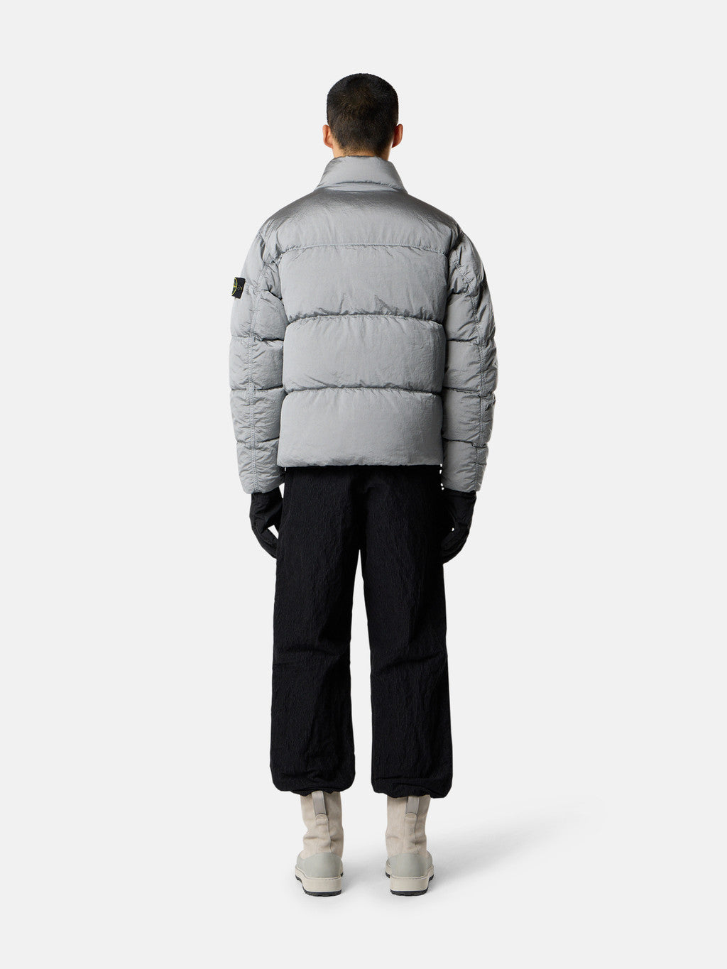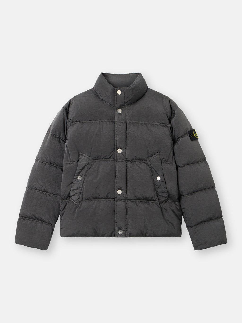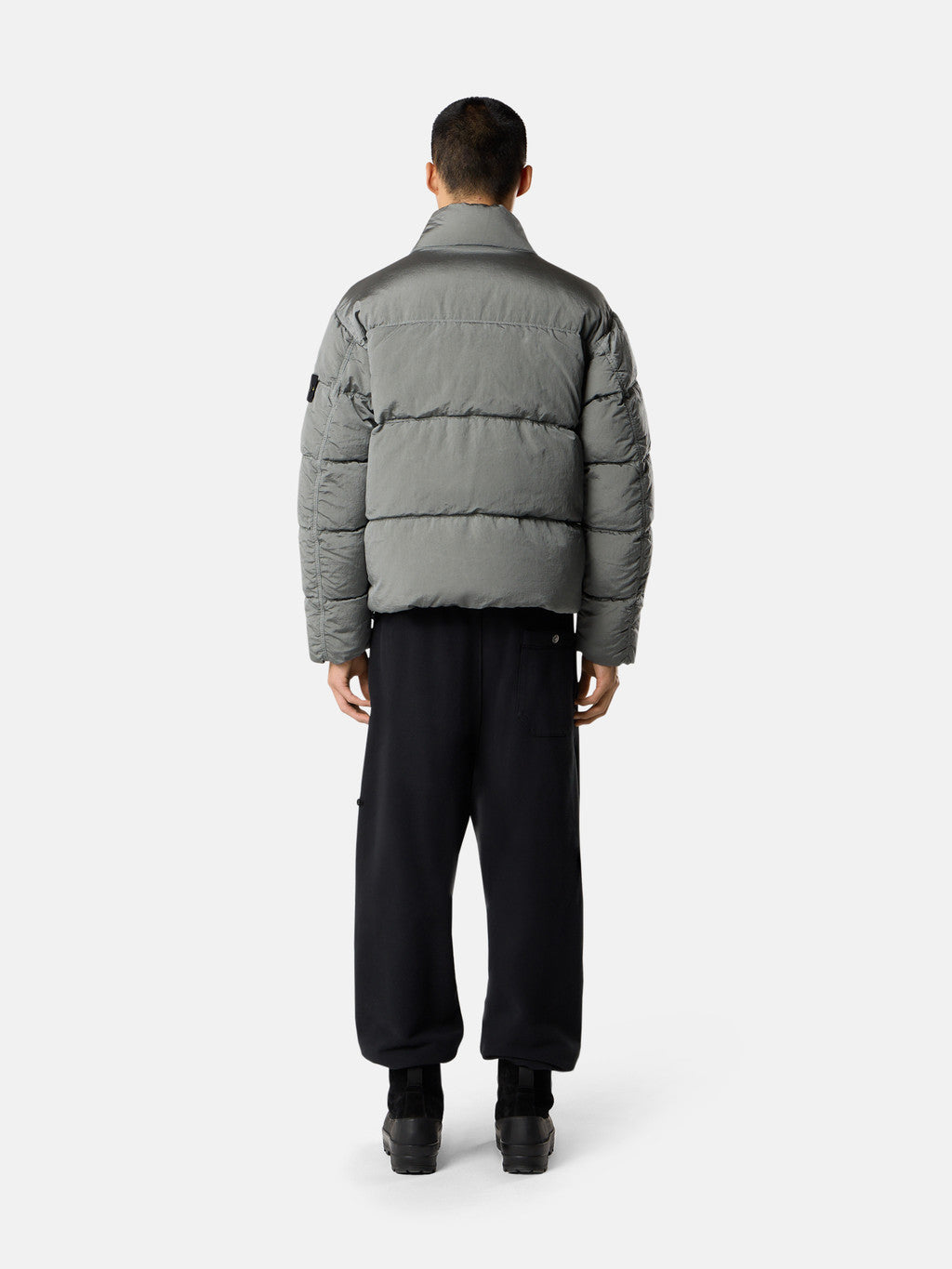 Down jacket in Stone Island's iridescent Nylon Metal fabric. The evolution of this iconic fabric sees the use of ECONYL regenerated yarns: the life ended nylon, pre- and post-consumer, is recycled with a complex depolymerization process to create this fibre that features the same intrinsic characteristics of nylon from fossil raw material. Garment dyed with a double colour recipe and the addition of a special anti-drop agent. Padded with the finest feathers specifically treated to withstand the garment dyeing procedure. RDS - Responsible Down Standard certified.