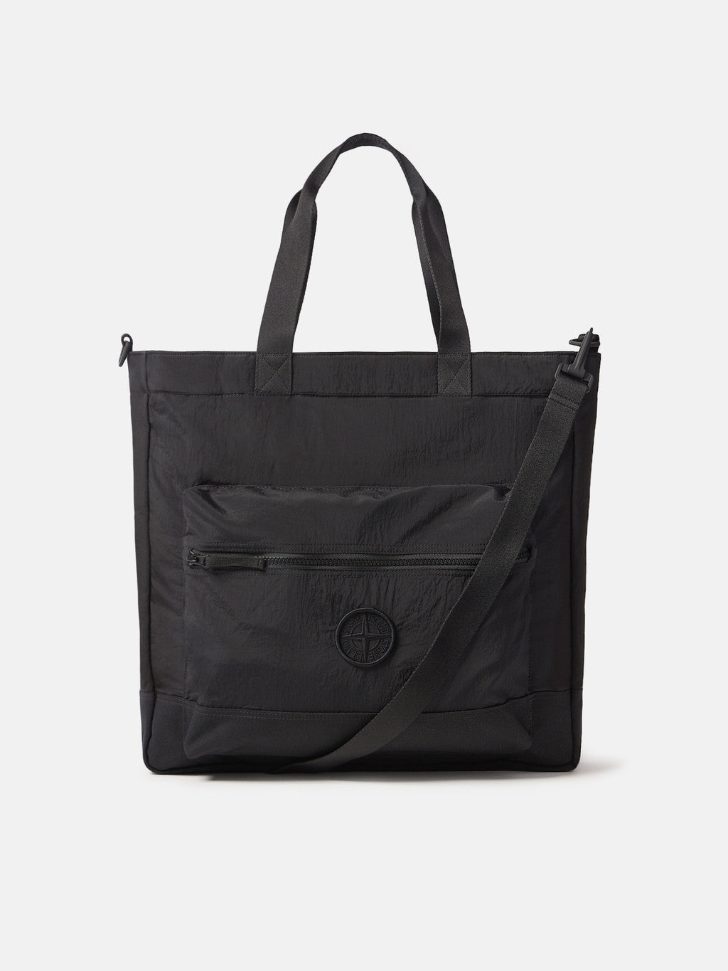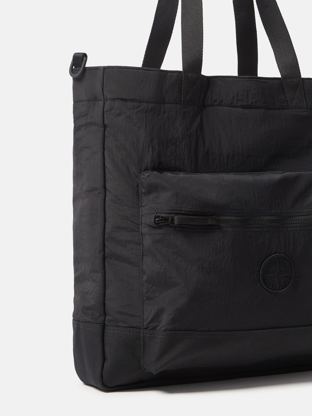 Tote bag made in the responsible Stone Island iridescent Nylon Metal fabric. The evolution of this iconic fabric sees the use of ECONYL regenerated yarns: the life ended nylon, pre and post-consumer, is recycled with a complex depolymerization process to create this fibre that features the same intrinsic characteristics of nylon from fossil raw material.