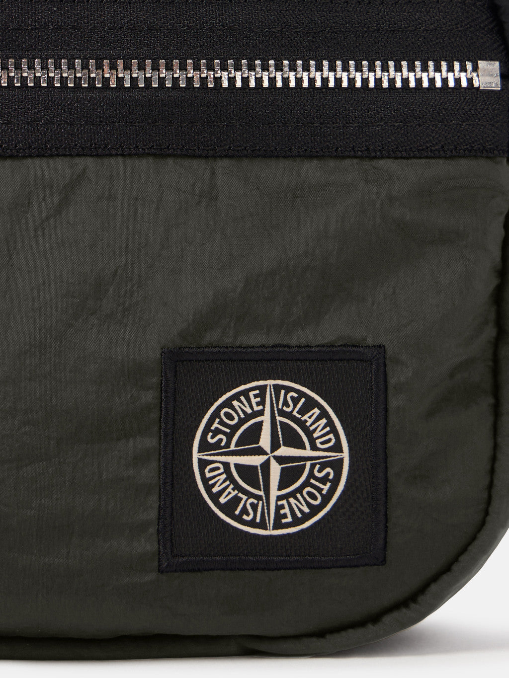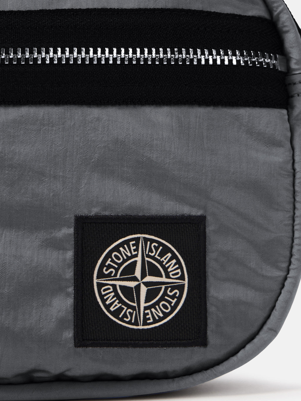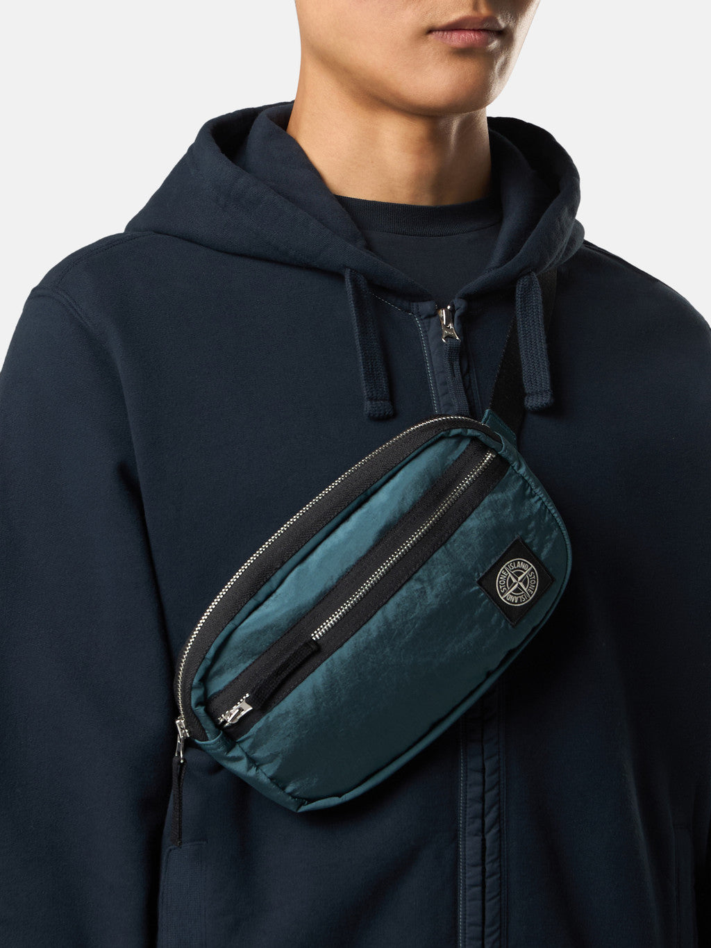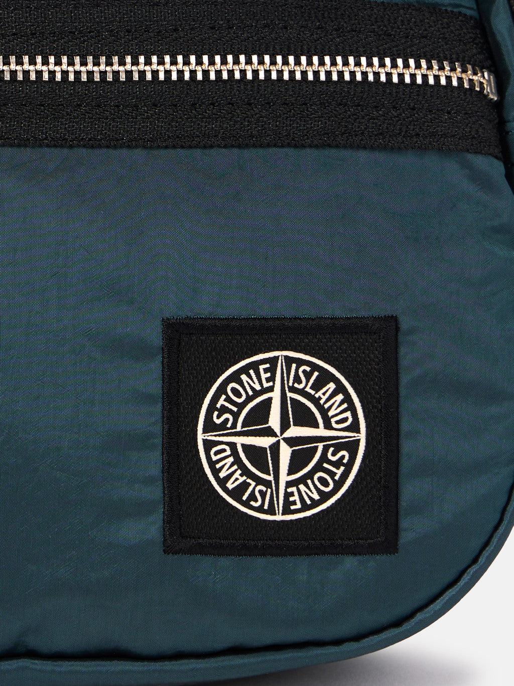 Belt bag in Stone Island's iridescent Nylon Metal fabric with polyurethane coating. The evolution of this iconic fabric sees the use of ECONYL regenerated yarns: the life ended nylon, pre- and post-consumer, is recycled with a complex depolymerization process to create this fibre that features the same intrinsic characteristics of nylon from fossil raw material.