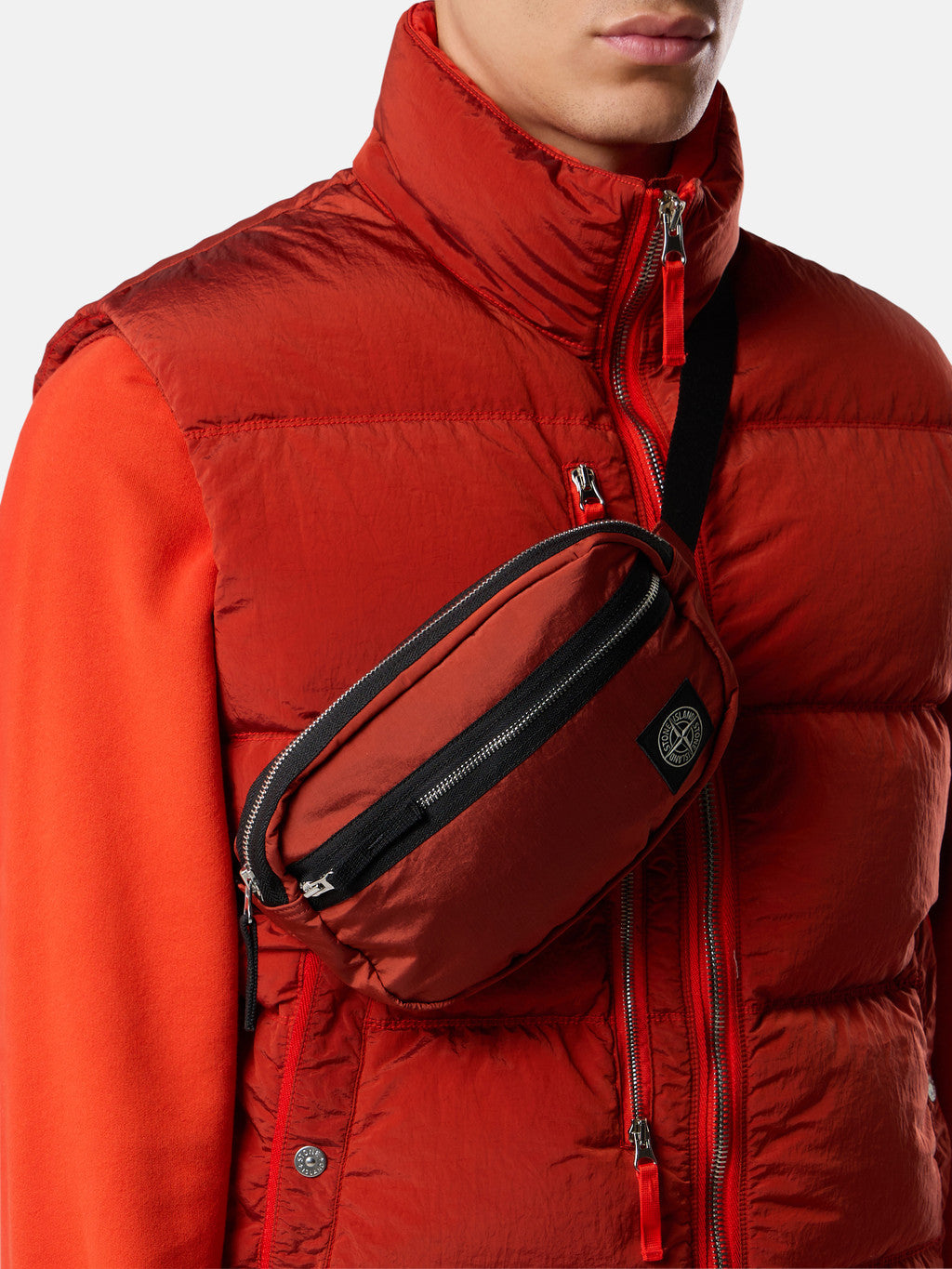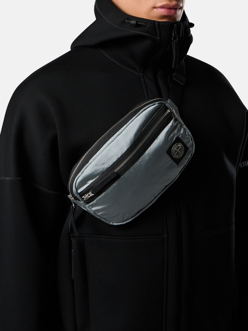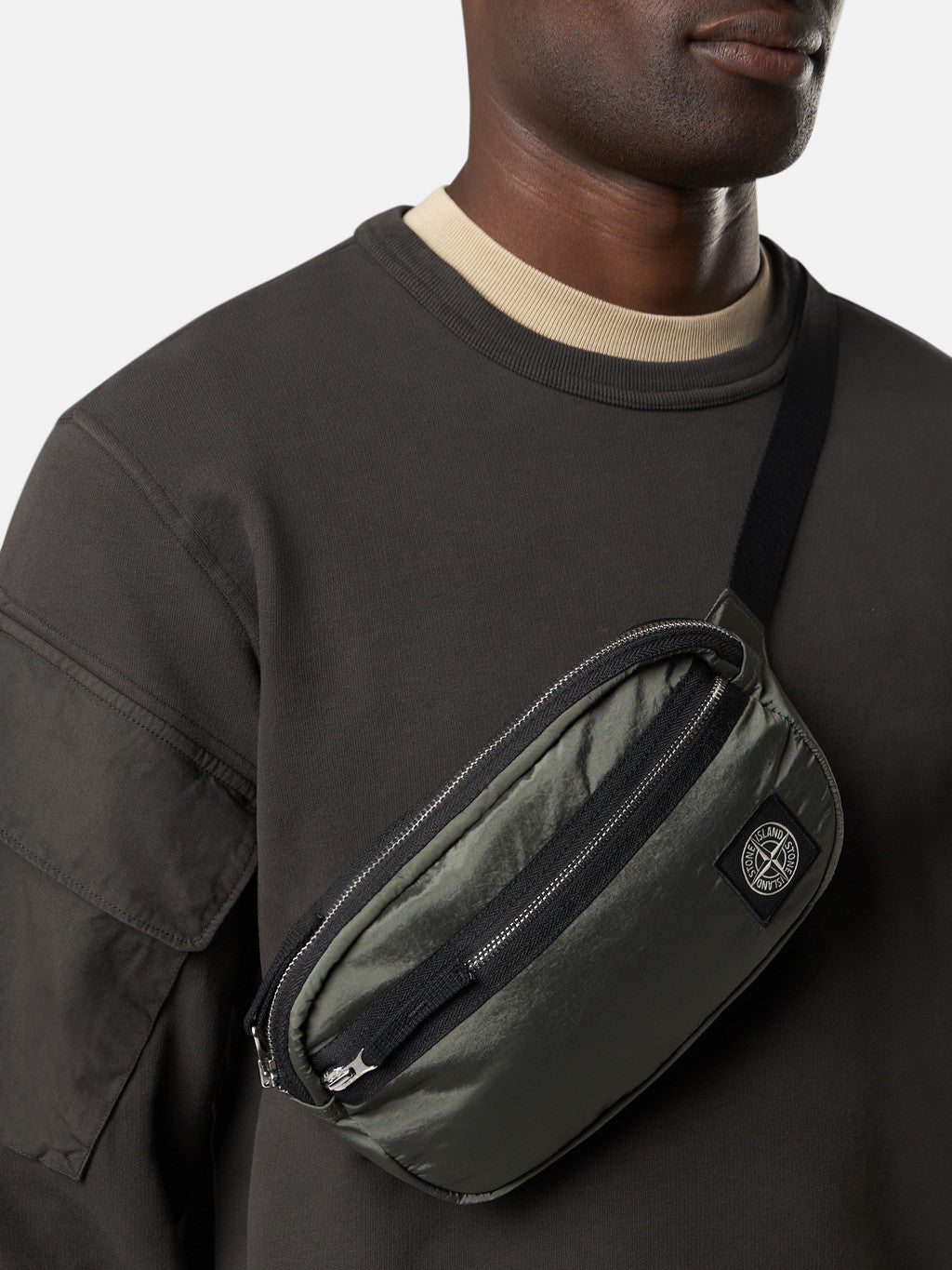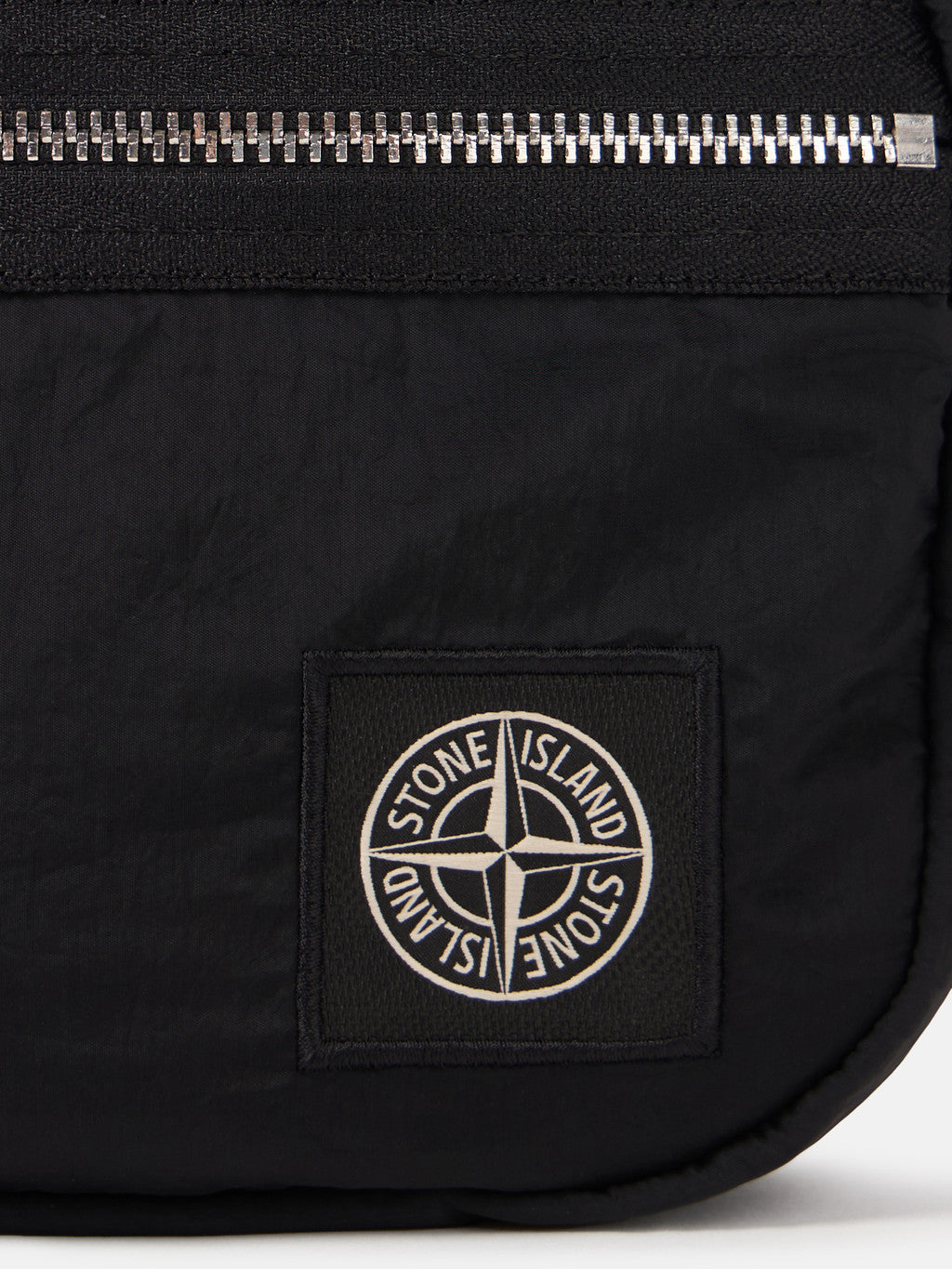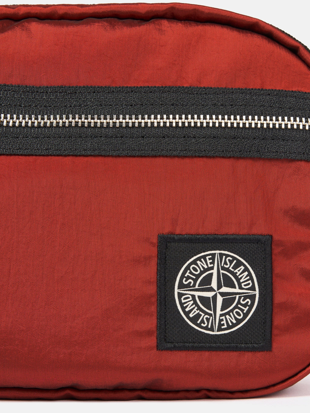Belt bag in Stone Island's iridescent Nylon Metal fabric with polyurethane coating. The evolution of this iconic fabric sees the use of ECONYL regenerated yarns: the life ended nylon, pre- and post-consumer, is recycled with a complex depolymerization process to create this fibre that features the same intrinsic characteristics of nylon from fossil raw material.