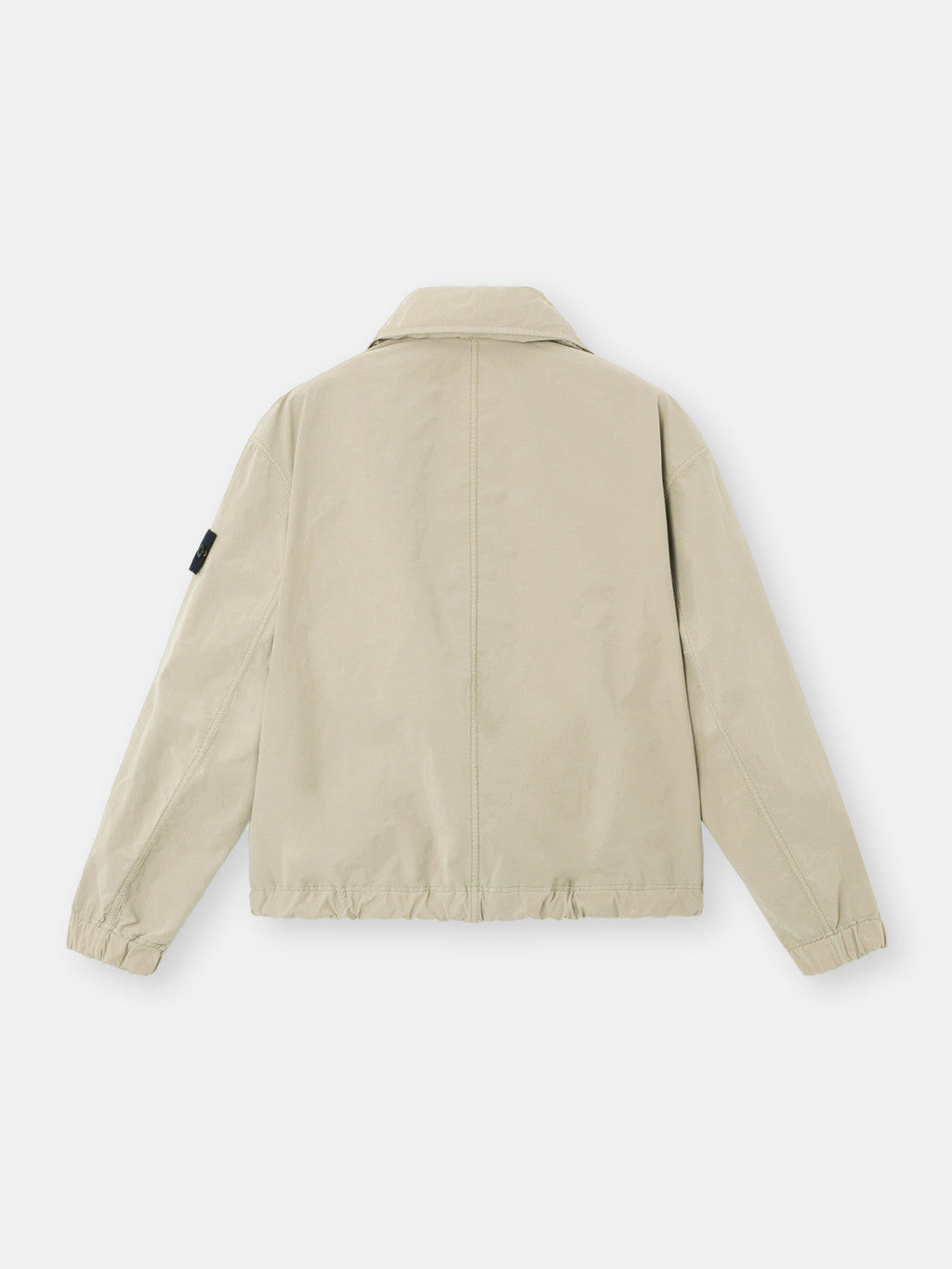 Shirt jacket in a lightweight tela made with Japanese star-shaped cross-section polyester/polyamide yarns. The pieces are assembled and then dyed under pressure at 130¡ãC with the addition of an anti-drop agent. During the garment dyeing process the heat radically transforms the material's hand and structure. The resulting garments combine an industrial appearance with a unique feel. Concealed hood.